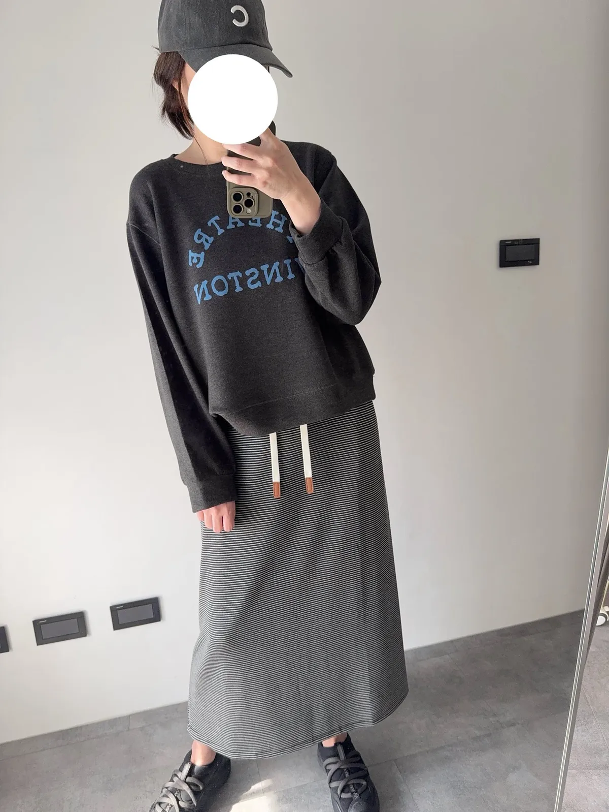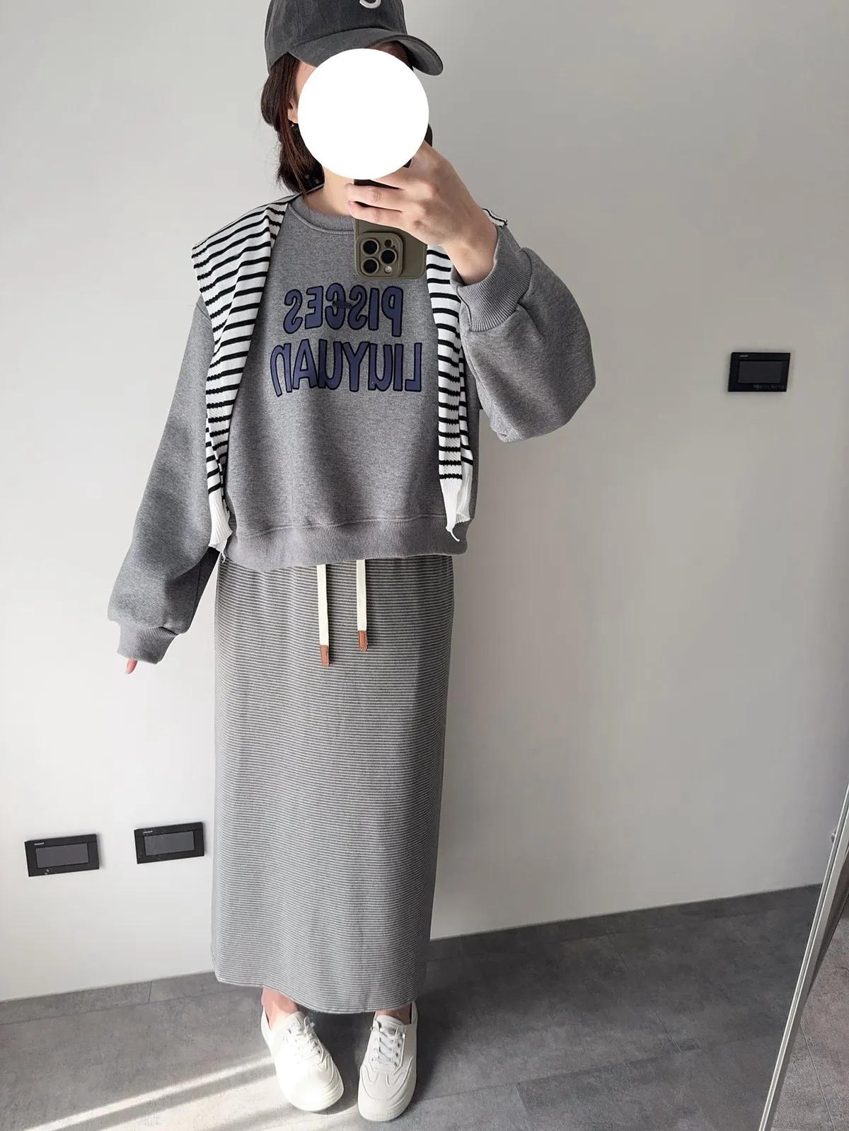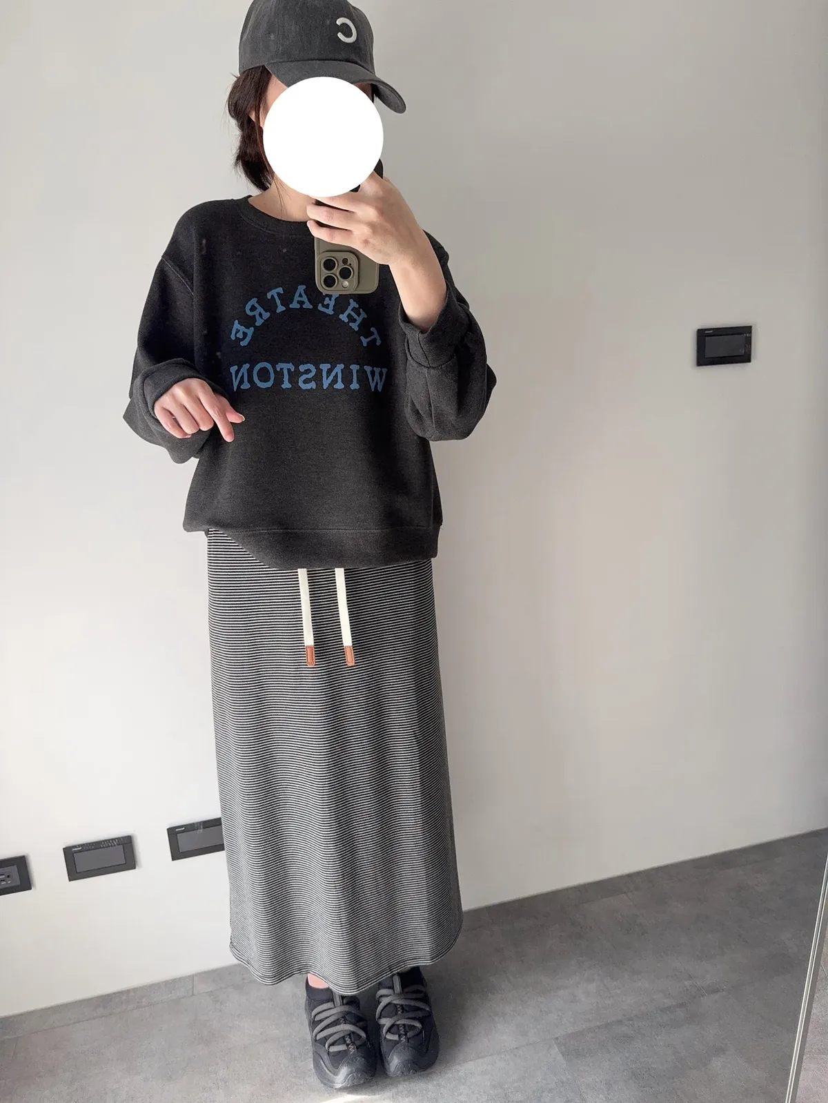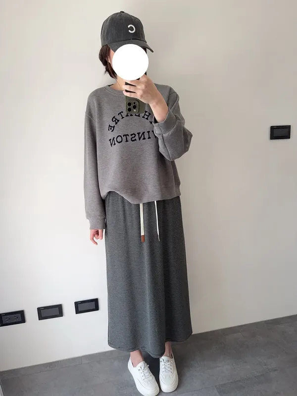 棉抽繩橫條半身裙