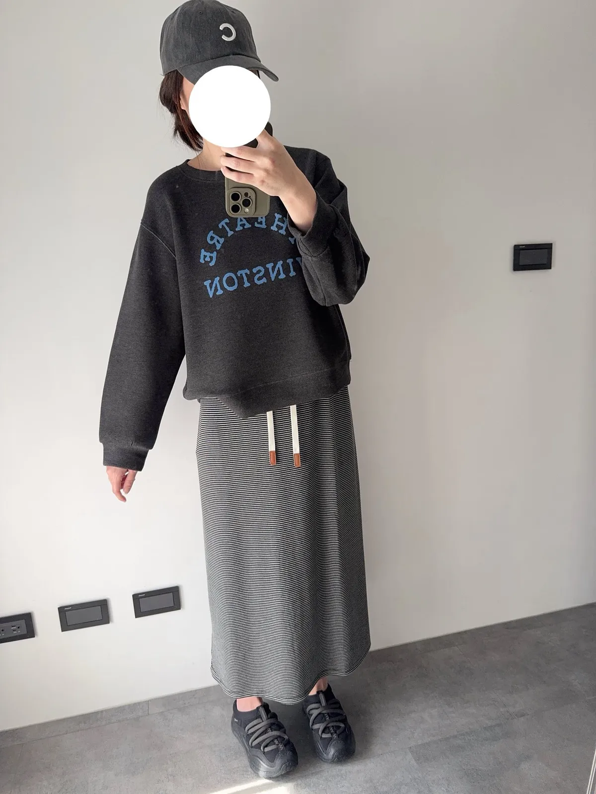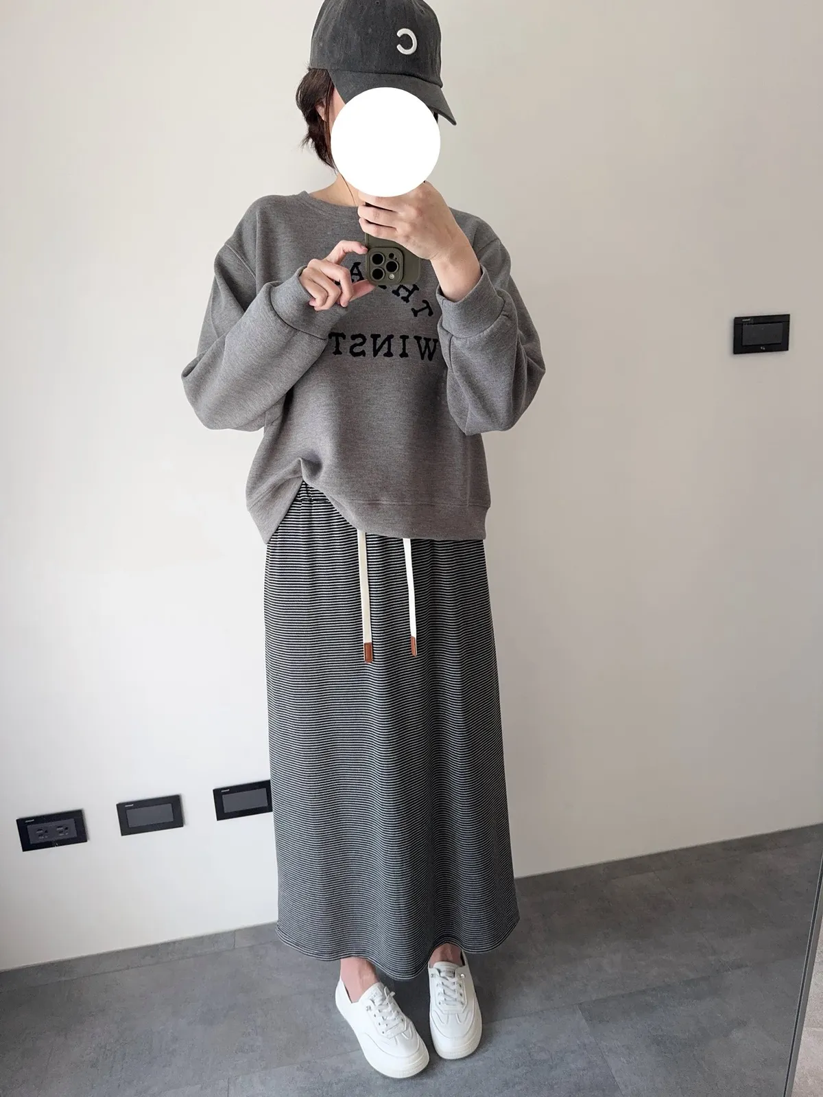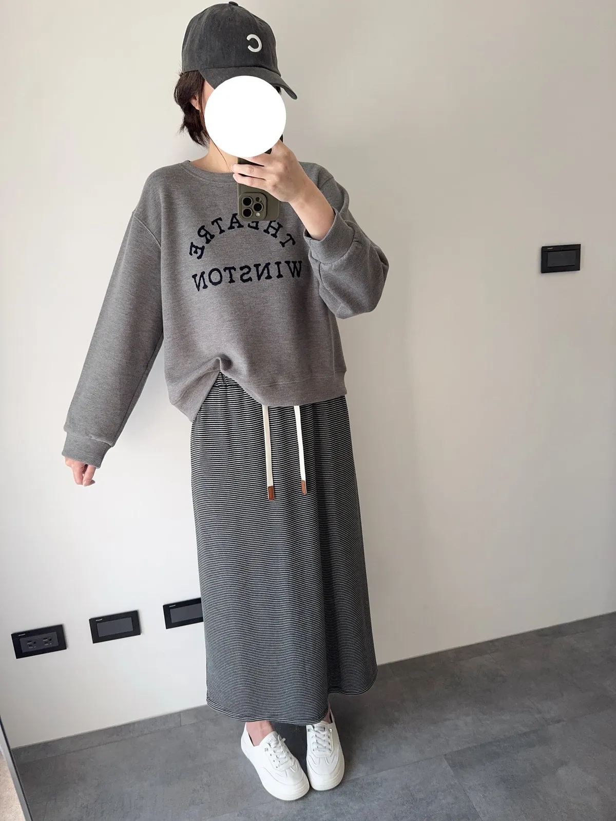 棉抽繩橫條半身裙