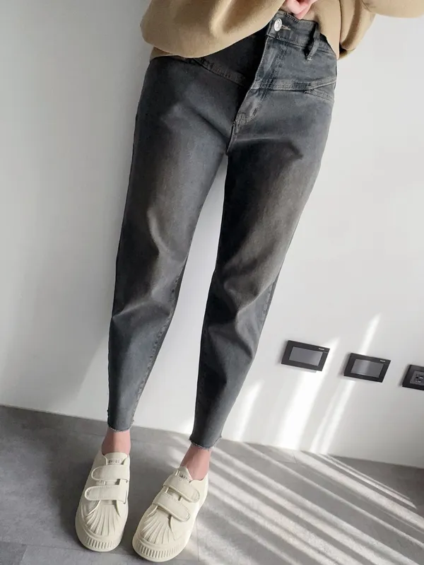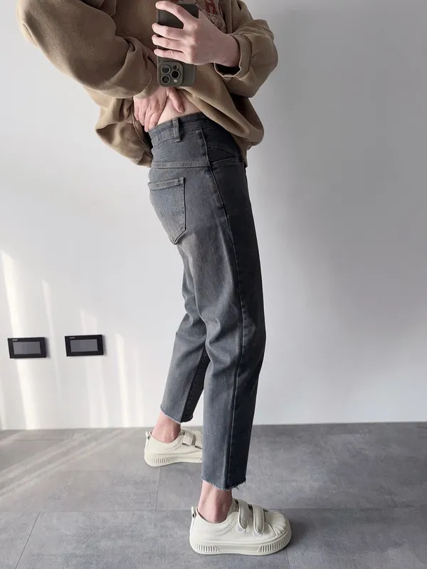 穿起來是順腿下窄的小男友褲
