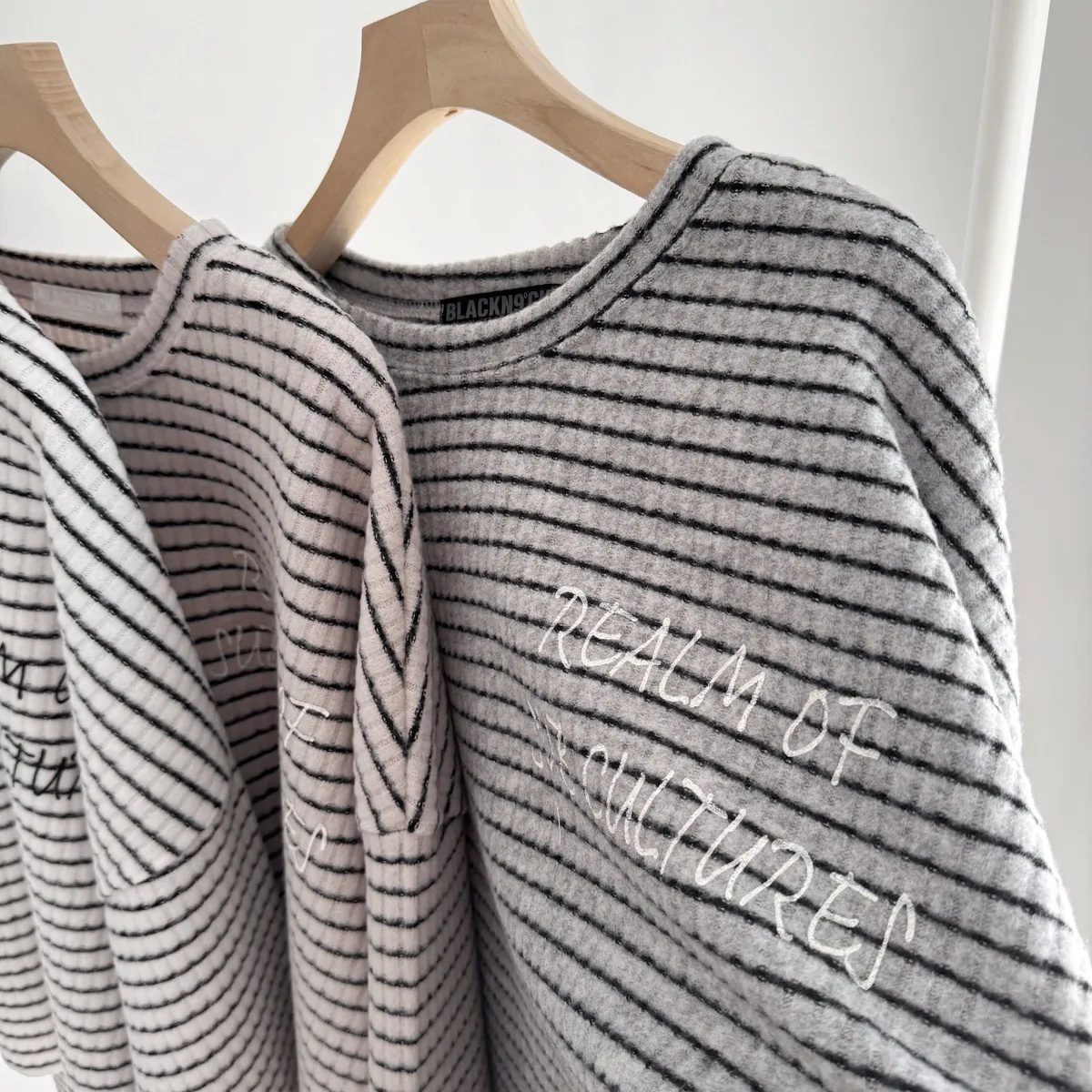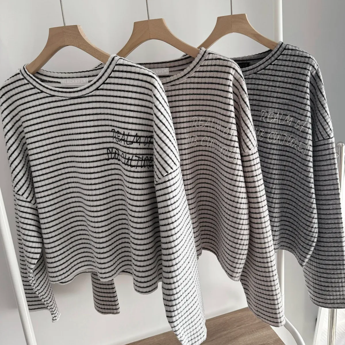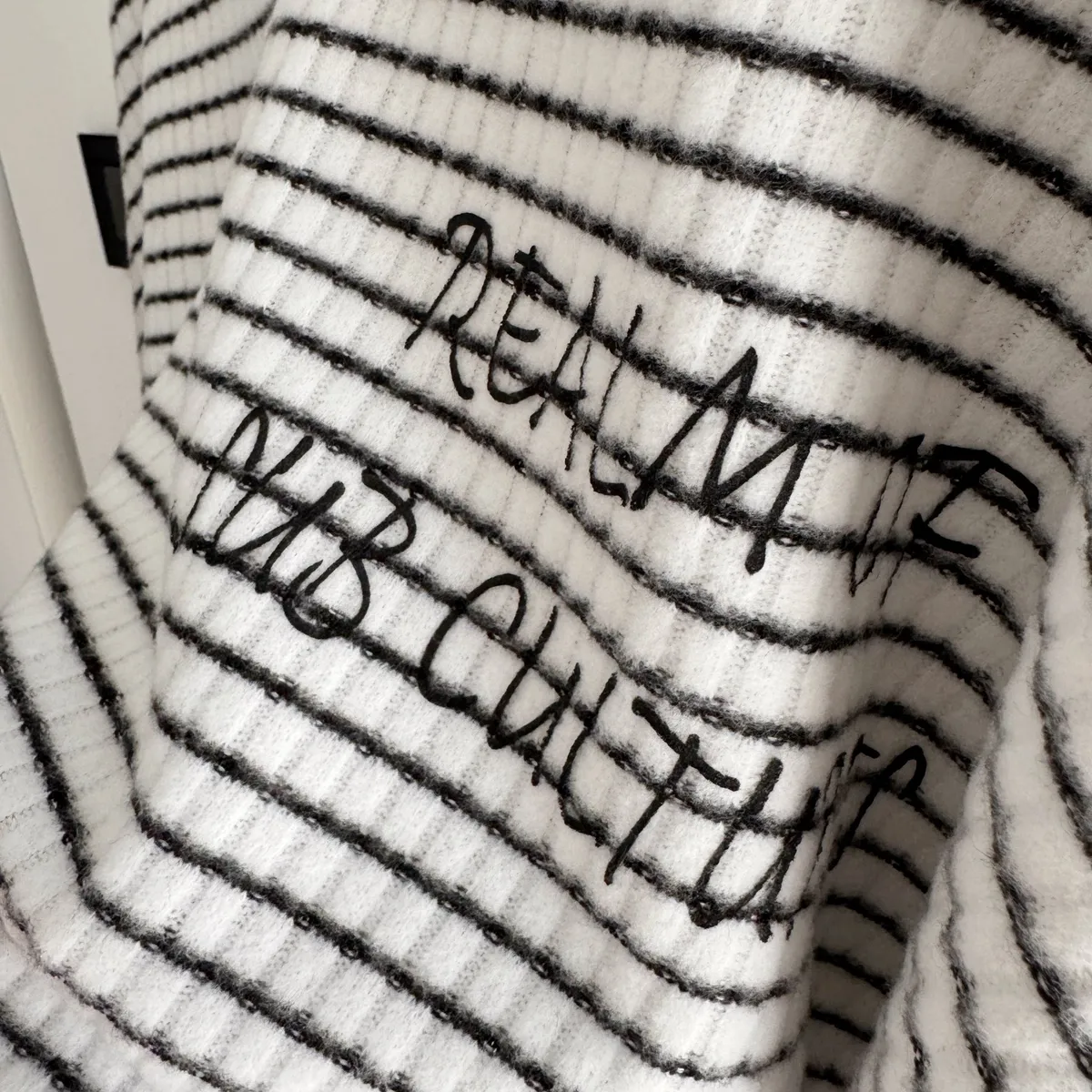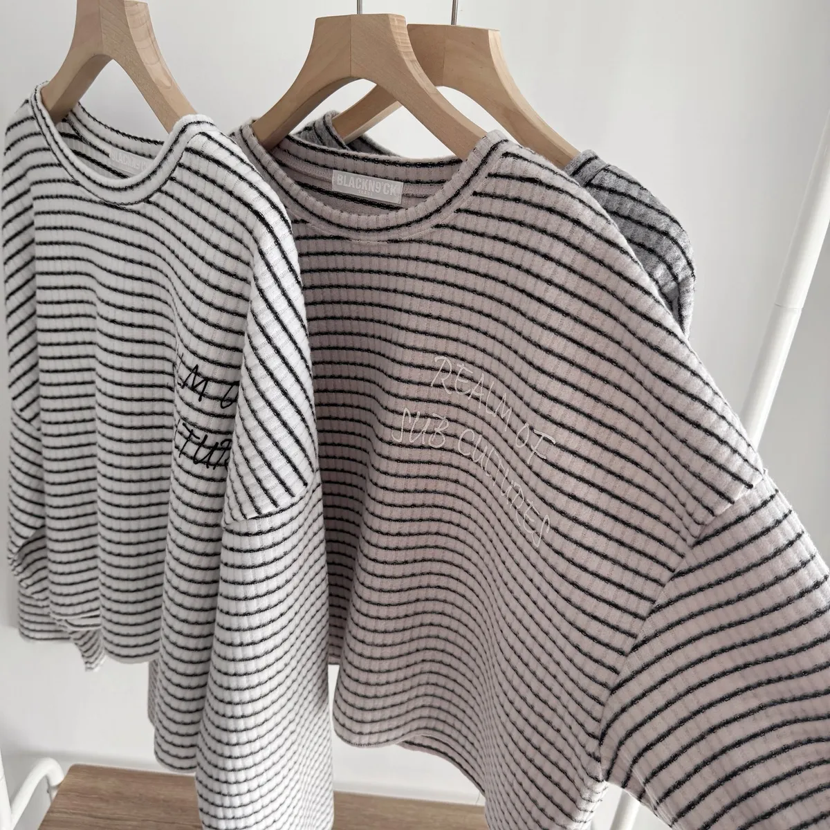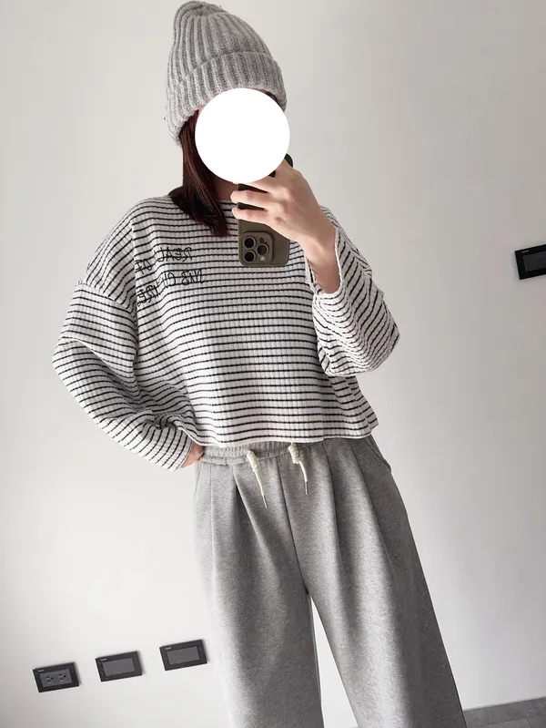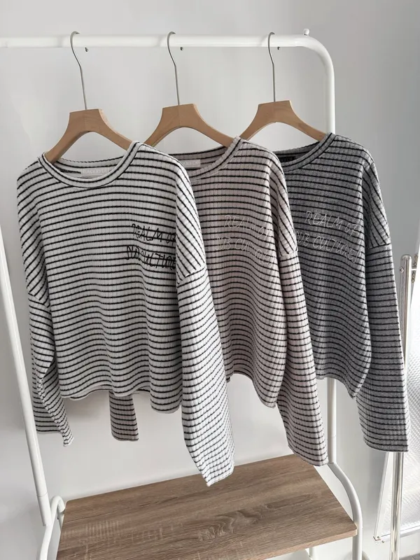 手寫英文字橫條織紋上衣